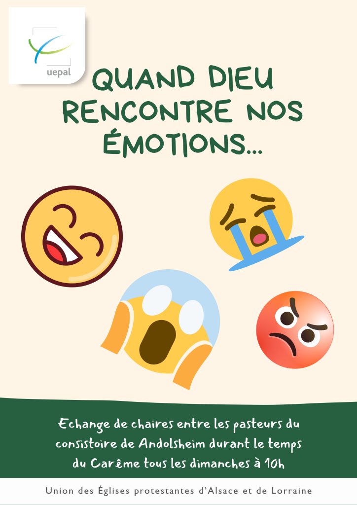 Pasteure Amélie Michaël, sur la tristesse : 1er mars à Andolsheim, 15 mars à Horbourg, 22 mars à Muntzenheim